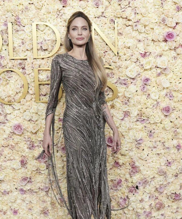 Jolie’s ensemble at the Golden Globe Awards was nothing short of breathtaking. Dressed in a striking silver McQueen gown, the actress demonstrated her impeccable fashion sense. The dress, which hugged her figure perfectly, featured intricate sheer cutouts and tasseled details along the hem. These added elements gave the gown a distinctive flair, enhancing its elegance.