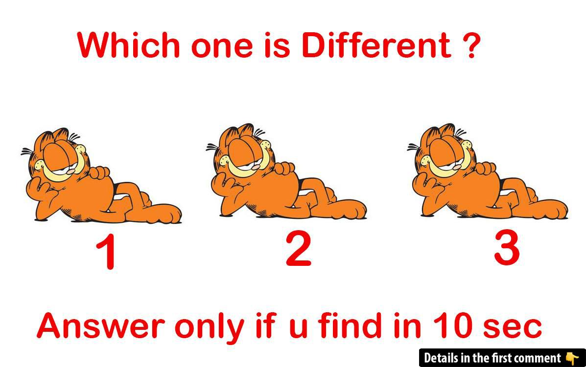 Are you ready for a challenge? In this fun puzzle, you’ll be looking at three images of Garfield. But here’s the twist: only one of them is different! Can you spot it? This puzzle tests your attention to detail, and the smallest differences are often the hardest to find. Take your time, look closely, and comment below with your answer – don’t forget to explain why you chose it! Challenge your friends and see who can spot the difference first. Let’s see how sharp your observation skills really are!